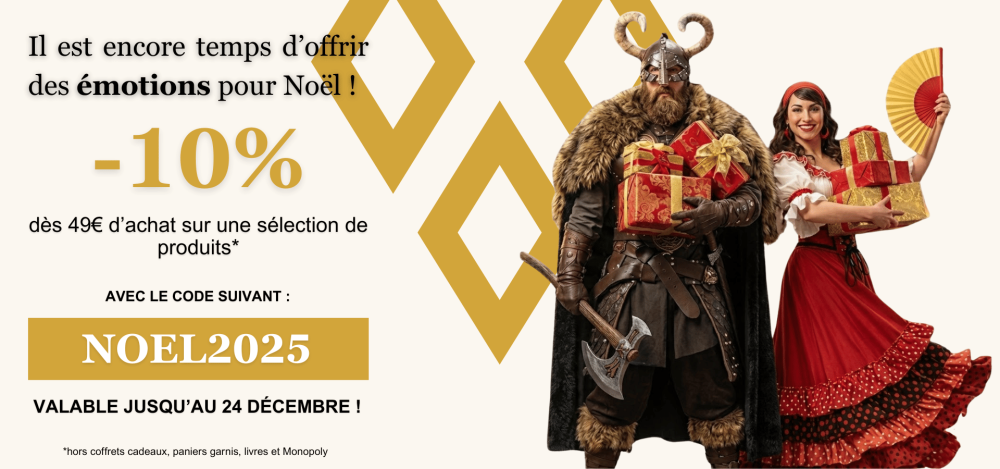 Offrez un Noël inoubliable avec notre sélection de cadeaux inspirés du Puy du Fou : Monopoly exclusif pour rejouer les grandes aventures, livres captivants à dévorer au coin du feu, peluches et jouets pour petits et grands, CD et vinyles des musiques emblématiques, savons parfumés, douceurs gourmandes et boissons d’exception pour prolonger l’esprit du parc à la maison.